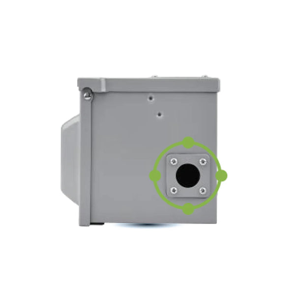 NEMA Type 14-50R, 50A 125/250V receptacle in metal enclosure, designed for high-power applications such as EV charging or RV hookups, features a durable metal housing for enhanced protection, supports 50-amp service at 125/250 volts, and meets NEMA standards for safe and reliable residential or commercial installations.